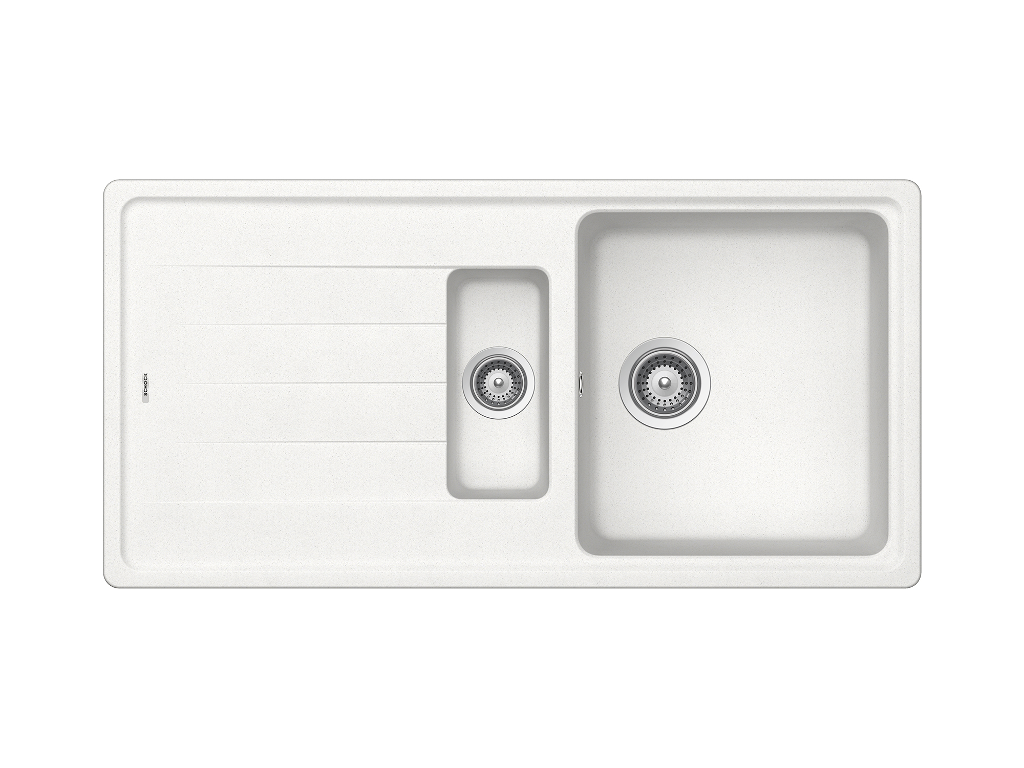 SCHOCK Element D-150 Cristalite Alpina másfél medencés gránit mosogató, szifonnal, fehér, beépíthetőParaméterek