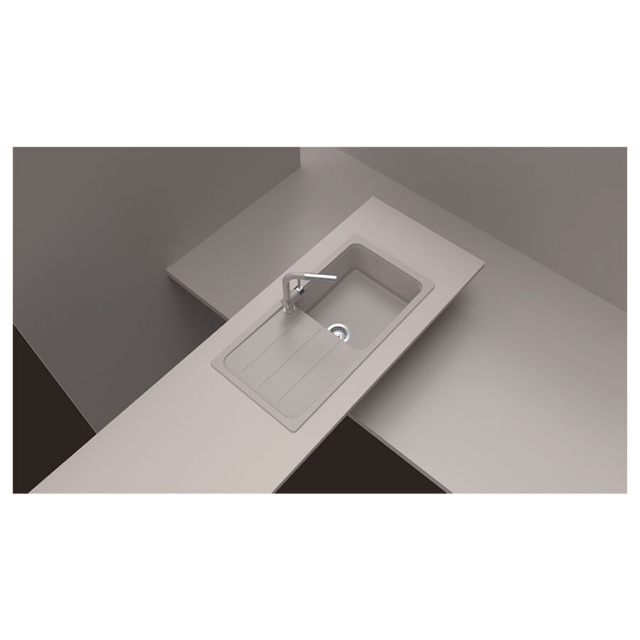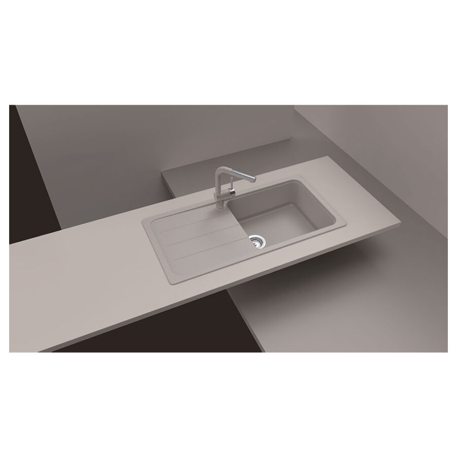 A CRISTALITE® mosogató felülete kissé érdes, textúrája kőhatású. A 70-75%-ban természetes kvarchomokból - a gránit legkeményebb alkotórészéből - álló robusztus, kőkemény kompozit mosogató. Víz és egy kis mosogatószer elegendő ahhoz, hogy megtisztítsuk a mosogatót a mindennapos, szokásos kihívások után.
