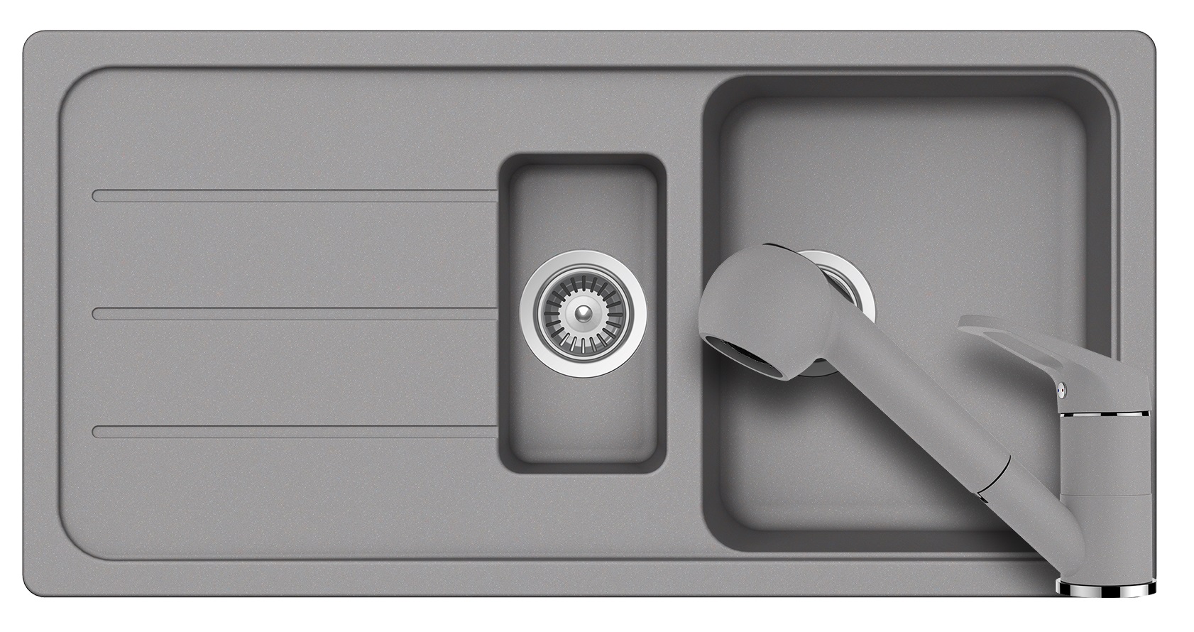 SCHOCK Formhaus D-150L Cristalite Croma másfél medencés gránit mosogató szett, Schock Cosmo Ext konyhai csaptelep kihúzható fejjel, szürke, beépíthetőParaméterek