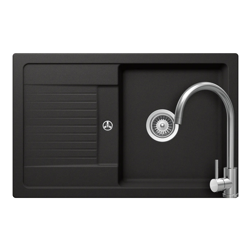 Schock Lima D-100S konyhai mosogatótálca 780 x 500 mm Cristalite Nero, fekete és Schock Prima konyhai csaptelep rozsdamentes acél, beépíthető