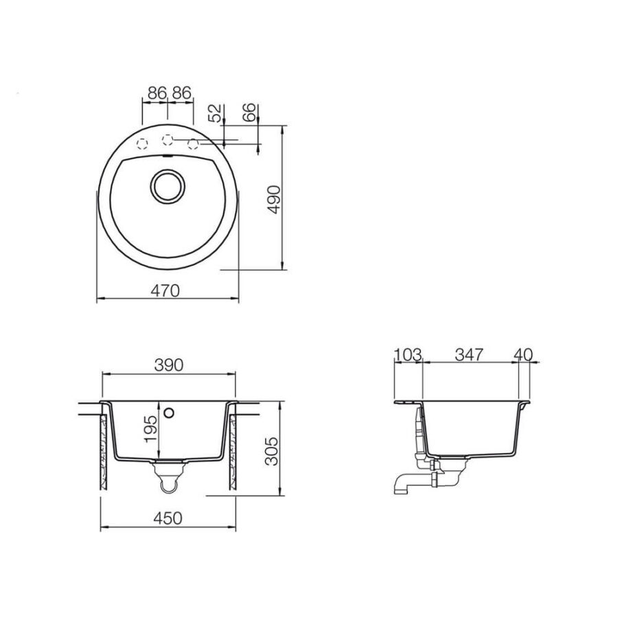 SCHOCK Manhattan R-100 Cristalite Croma egymedencés kerek gránit mosogató, szifonnal, szürke, beépíthetőParaméterek