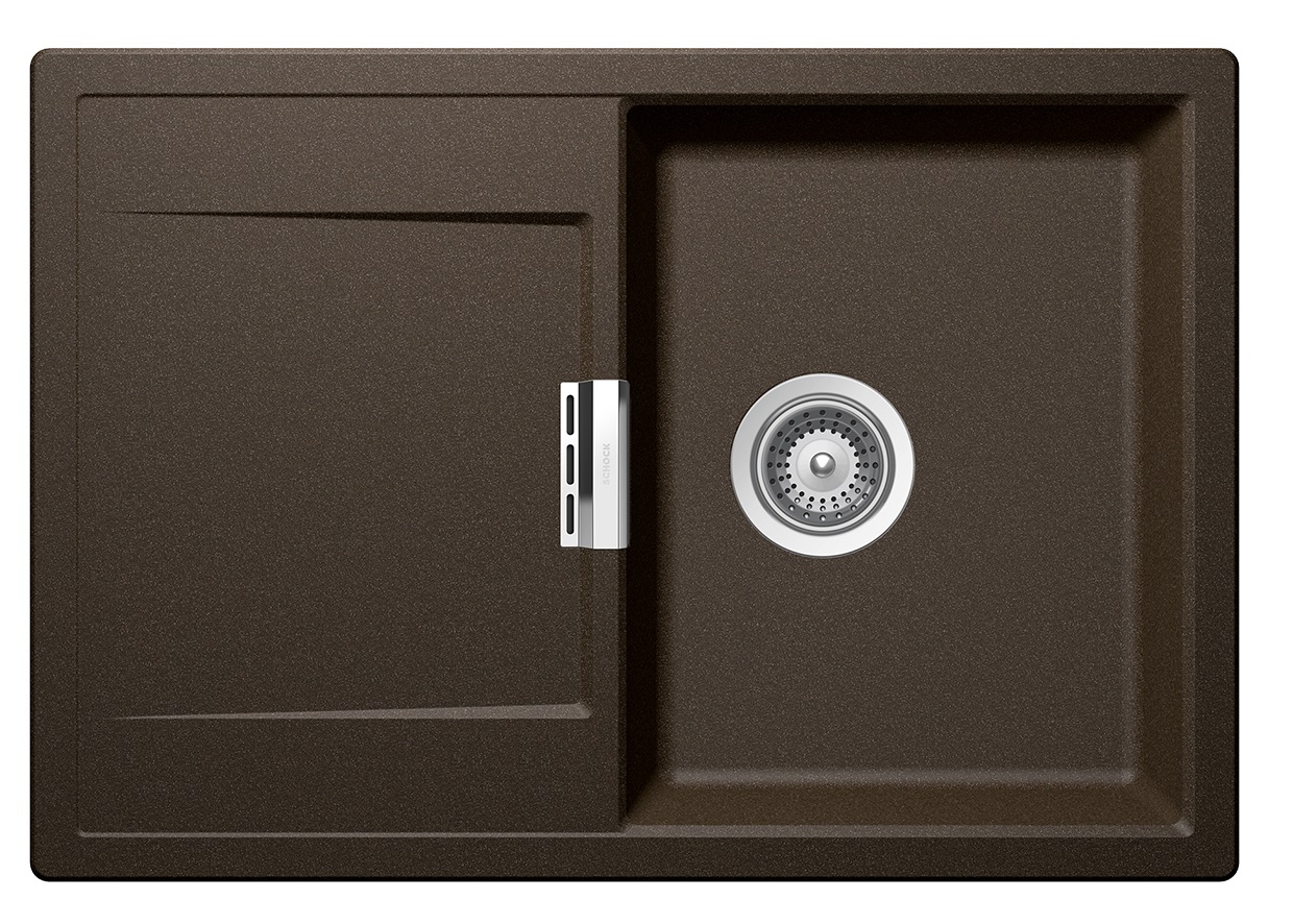 SCHOCK Mono D-100S Cristadur Bronze gránit mosogató szűrőkosaras leeresztővel, szifonkészlettel, csepegtető tálcával, barna színben