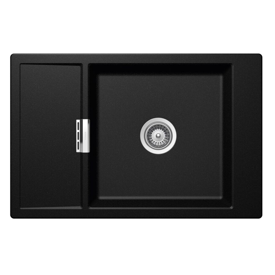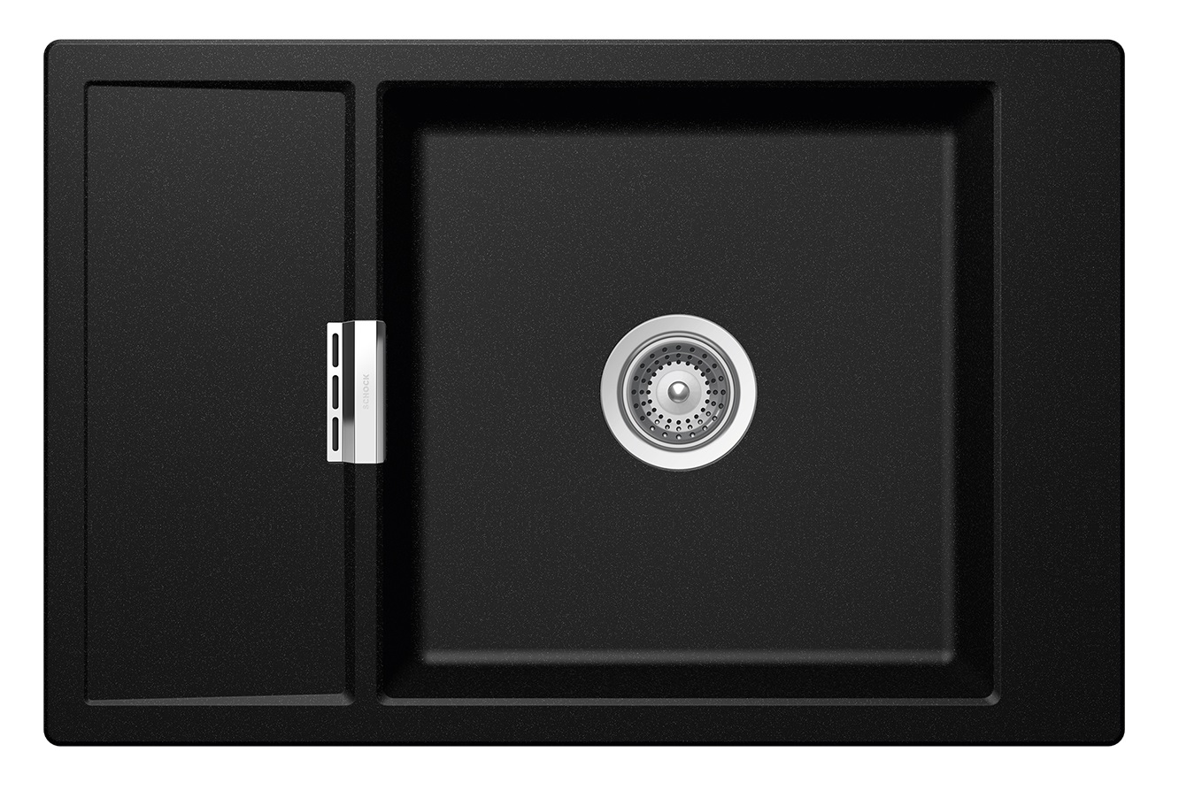 SCHOCK Mono D-100XS Cristadur Magma gránit mosogató manuális szűrőkosaras leeresztővel, szifonkészlettel, csepegtető tálcával, fekete-szemcsés színben