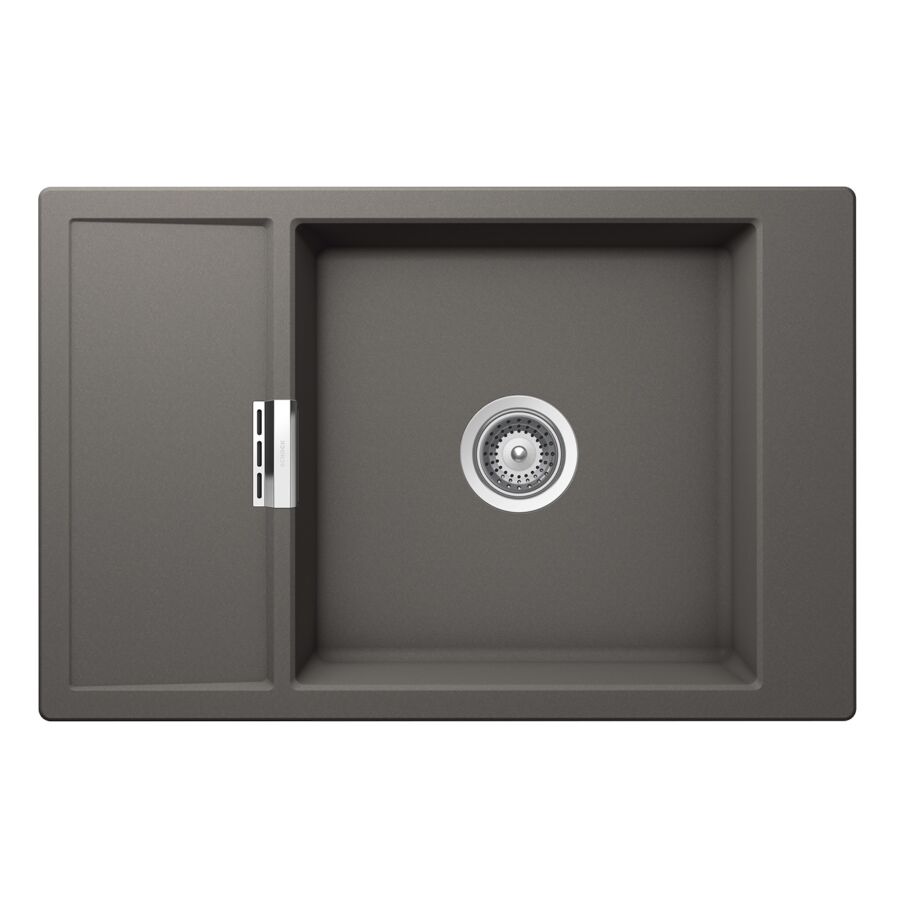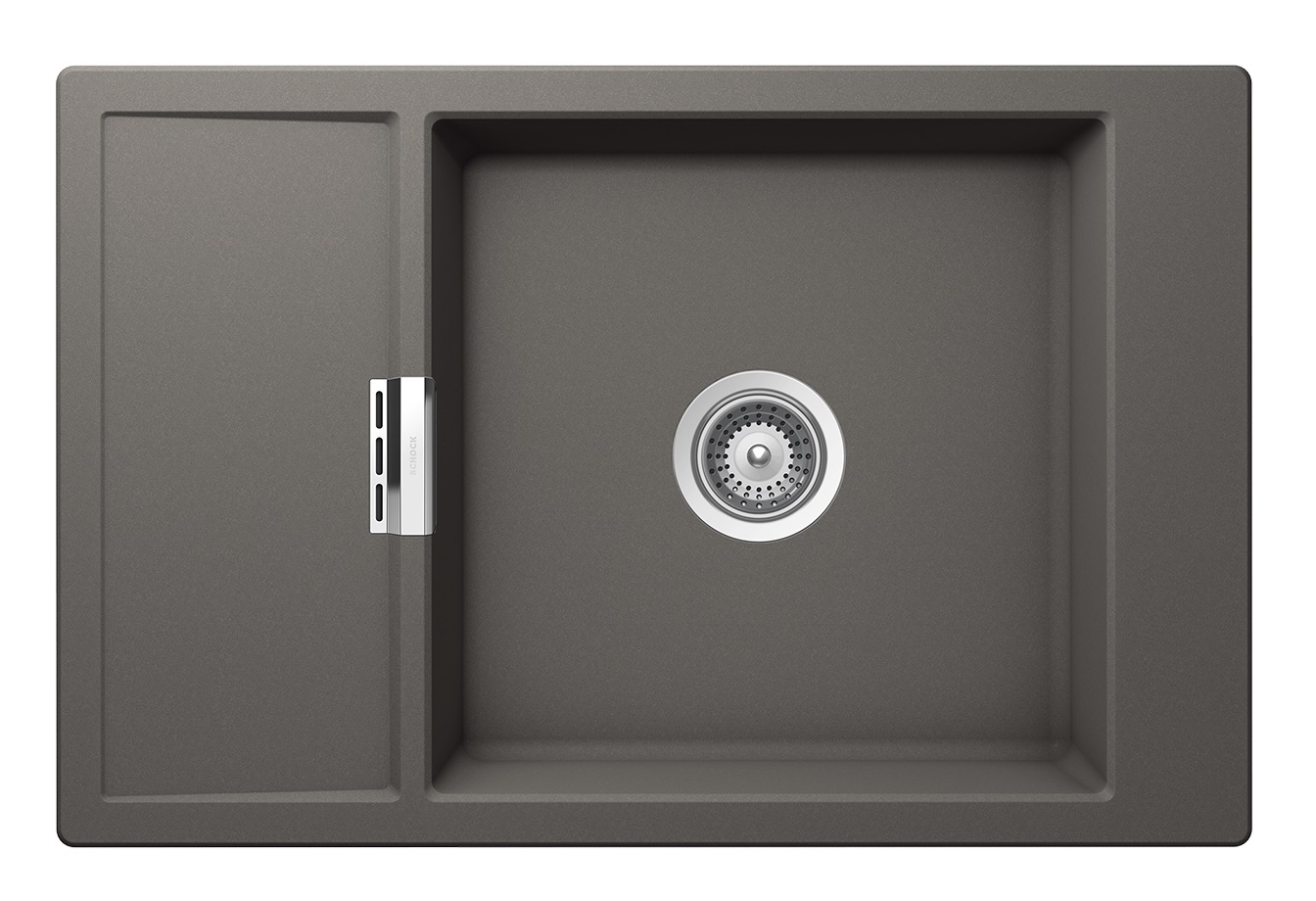 SCHOCK Mono D-100XS Cristadur Silverstone gránit mosogató manuális szűrőkosaras leeresztővel, szifonkészlettel, csepegtető tálcával, sötétszürke színben