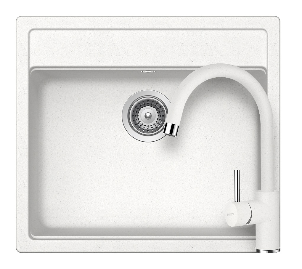 SCHOCK Nemo N-100 Cristalite Alpina egymedencés gránit mosogató szett, Schock Plutos csaptelep, fehér, beépíthetőParaméterek