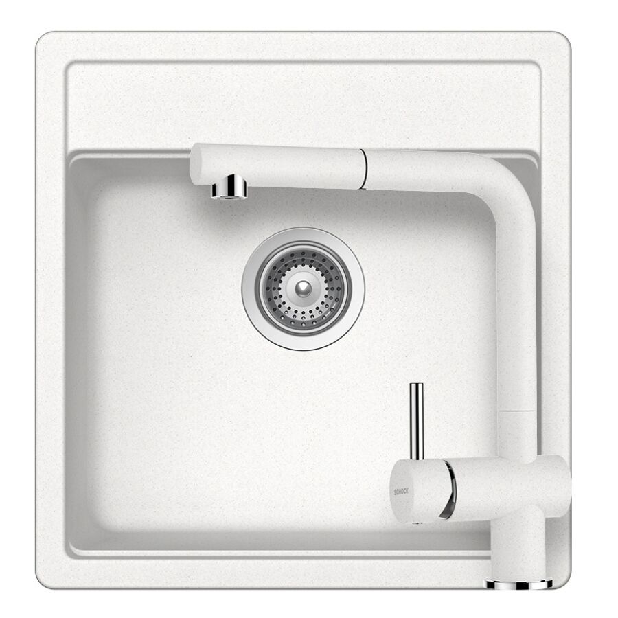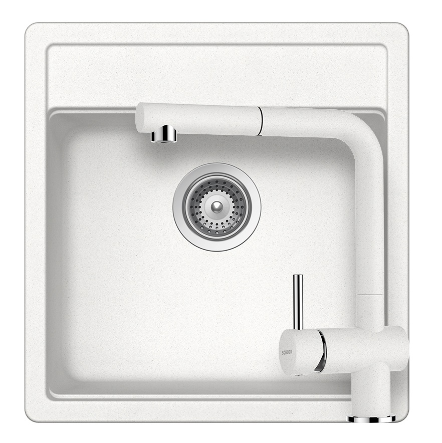 SCHOCK Nemo N-100S Cristalite Alpina egymedencés gránit mosogató szett, Schock Epos csaptelep, fehér, beépíthetőParaméterek