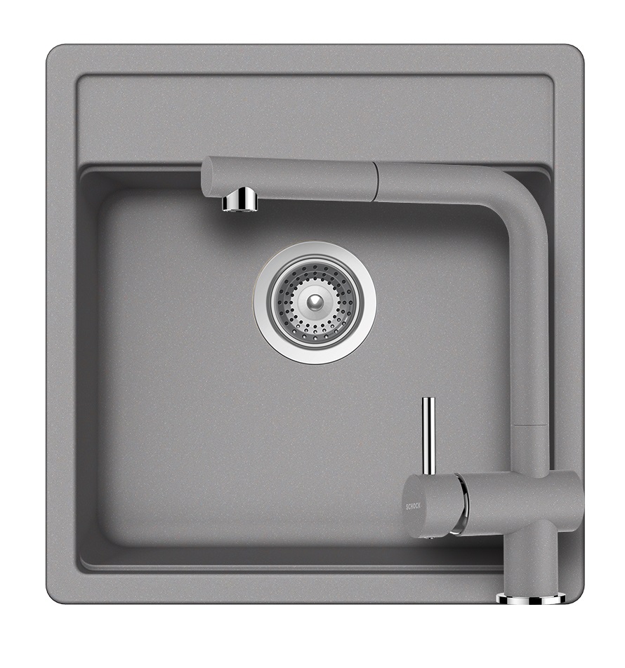SCHOCK Nemo N-100S Cristalite Croma egymedencés gránit mosogató szett, Schock Epos csaptelep, szürke, beépíthetőParaméterek
