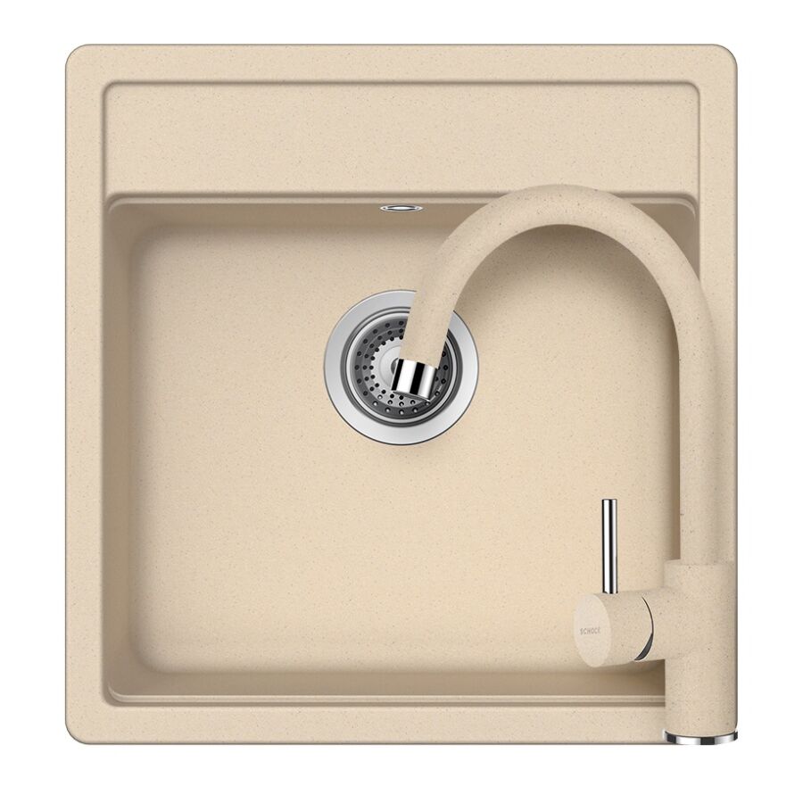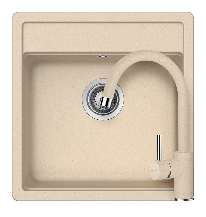 SCHOCK Nemo N-100S Cristalite Moonstone egymedencés gránit mosogató szett, Schock Plutos csaptelep, bézs, beépíthetőParaméterek