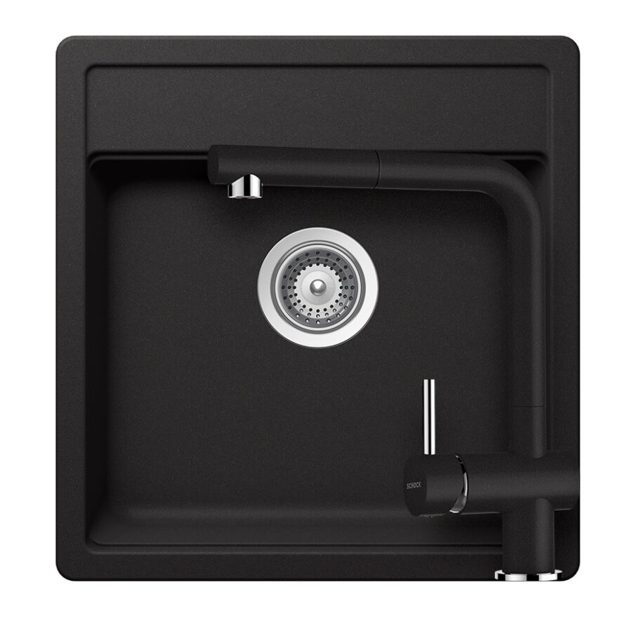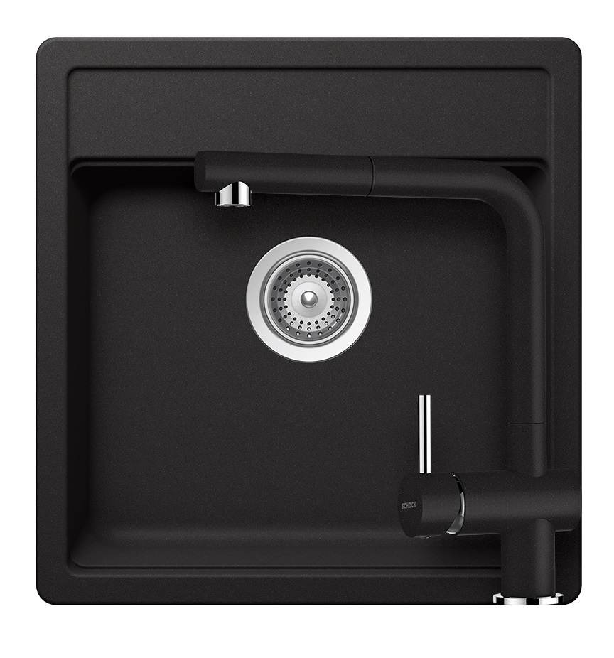SCHOCK Nemo N-100S Cristalite Nero egymedencés gránit mosogató szett, Schock Epos csaptelep, fekete, beépíthetőParaméterek