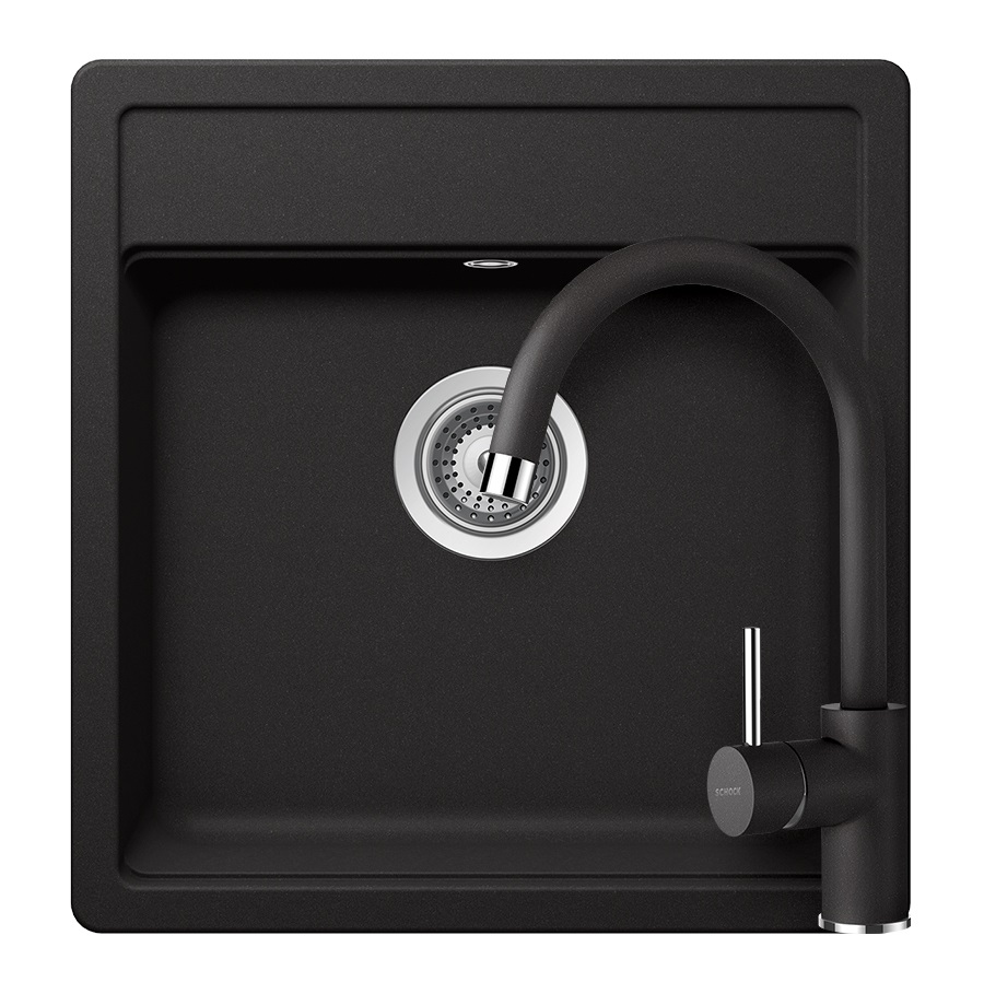 SCHOCK Nemo N-100S Cristalite Nero egymedencés gránit mosogató szett, Schock Plutos csaptelep, fekete, beépíthetőParaméterek