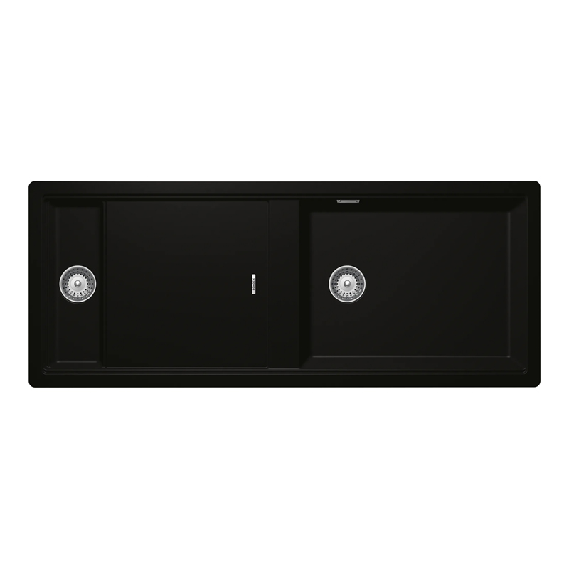 Schock Prepstation D-150 konyhai mosogatótálca Cristadur Green Line Night 1140 x 460 mm lefolyó távműködtetővel, gránit kompozit, éjfekete, beépíthető