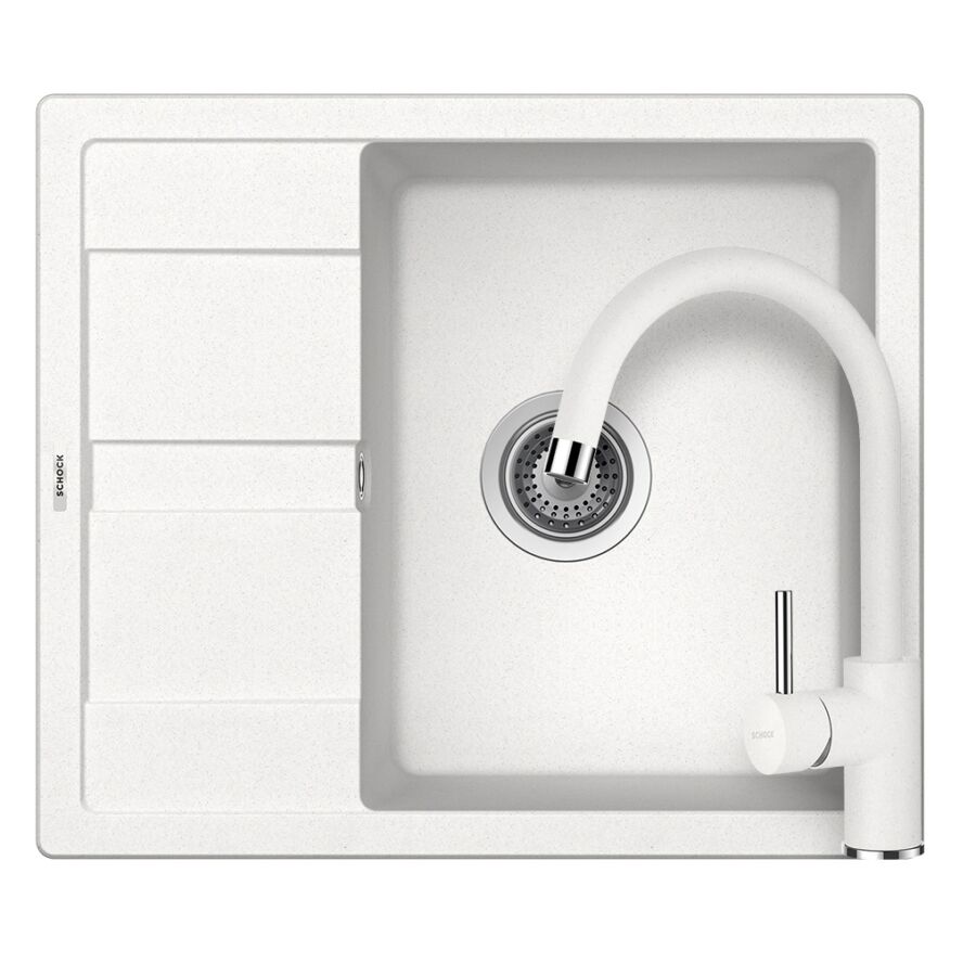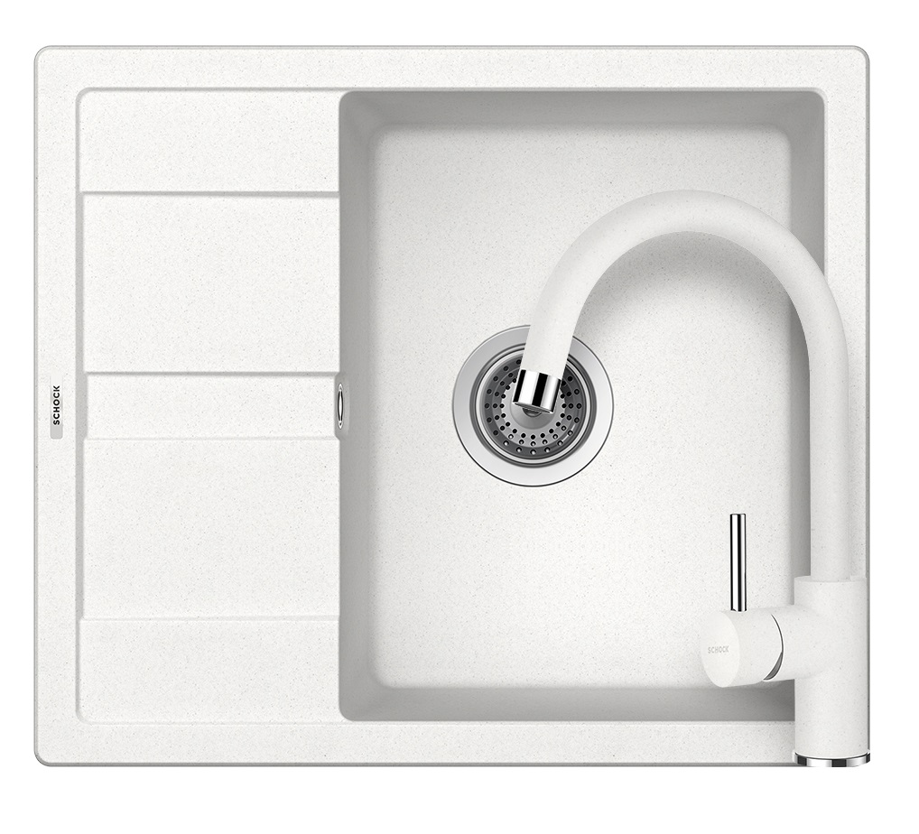 SCHOCK Ronda D-100 Cristalite Alpina gránit mosogatótálca szett, Schock Plutos konyhai csaptelep, fehér, beépíthetőParaméterek