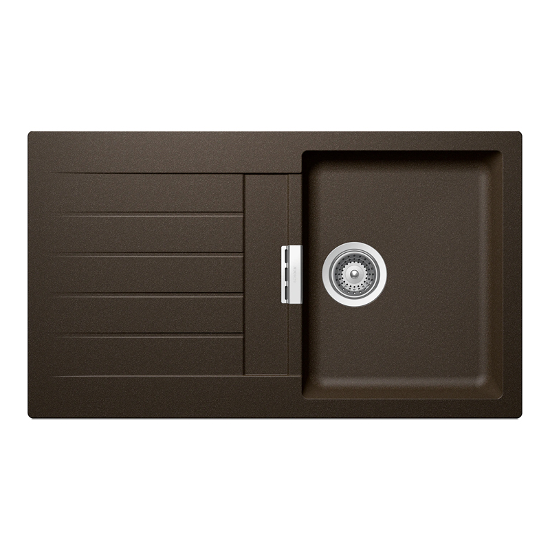 Schock Signus D-100 konyhai mosogatótálca Cristadur Bronze 860 x 500 mm, gránit, megfordítható, hagyományos beépítés, bronzbarna munkalapba beépíthető, egymedencés, csepegtetővel ellátott, ideálisan illeszkedik a minimum 45 cm-es alsószekrényhez. A mosogatótálca megfordítható, a csaptelep helye előre elkészített, könnyedén áttörhető. A csomagban találja a használati útmutatót, amely részletes leírást ad a csaptelep helyének megfelelő módon történő áttöréséről. A csaptelep helyét átlyukaszthatja a gyémántfúró segítségével, amelyet szállításkor mellékelünk a termékhez. Ezt a modellt az egyedülálló CRISTADUR® termékanyag teszi kimagaslóvá, amely kitűnik sűrű felülete által, rendkívül higiénikus, nem engedi a szennyeződést vagy a baktériumokat megtelepedni a mosogató felületén, ezáltal könnyű tisztán tartani. Dizájnját erősíti, hogy klasszikus vonalai elenganciát sugároznak, így a mosogató hangsúlyosan modern. A csomag lefolyógarnitúrát (mosogatógép vagy mosógép csatlakozással), szűrőkosaras lefolyót, rögzítőkapcsokat és gyémántfúrót tartalmaz.