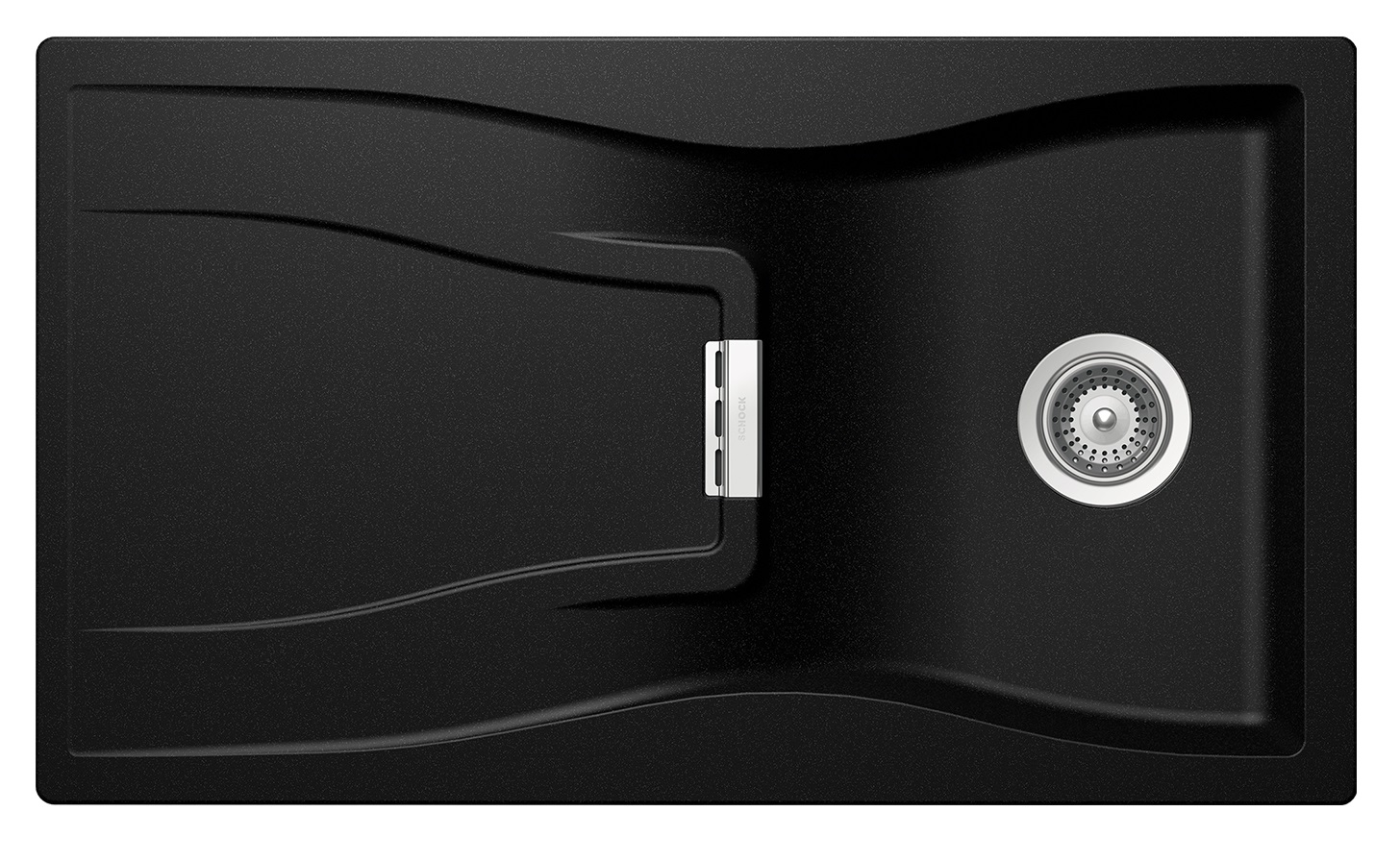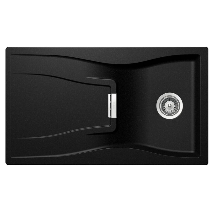 SCHOCK Waterfall D-100 Cristadur Magma gránit mosogató szűrőkosaras leeresztővel, szifonkészlettel, csepegtető tálcával, fekete-szemcsés színben