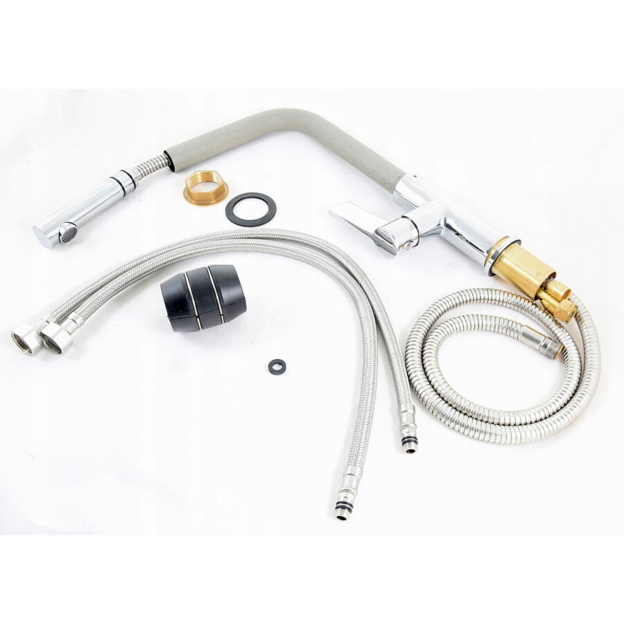 A csomag tartalmaz minden szerelvényt, ami a bekötéshez szükséges Side konyhai csaptelep szürke-szemcsés/króm, beépíthetőParaméterek