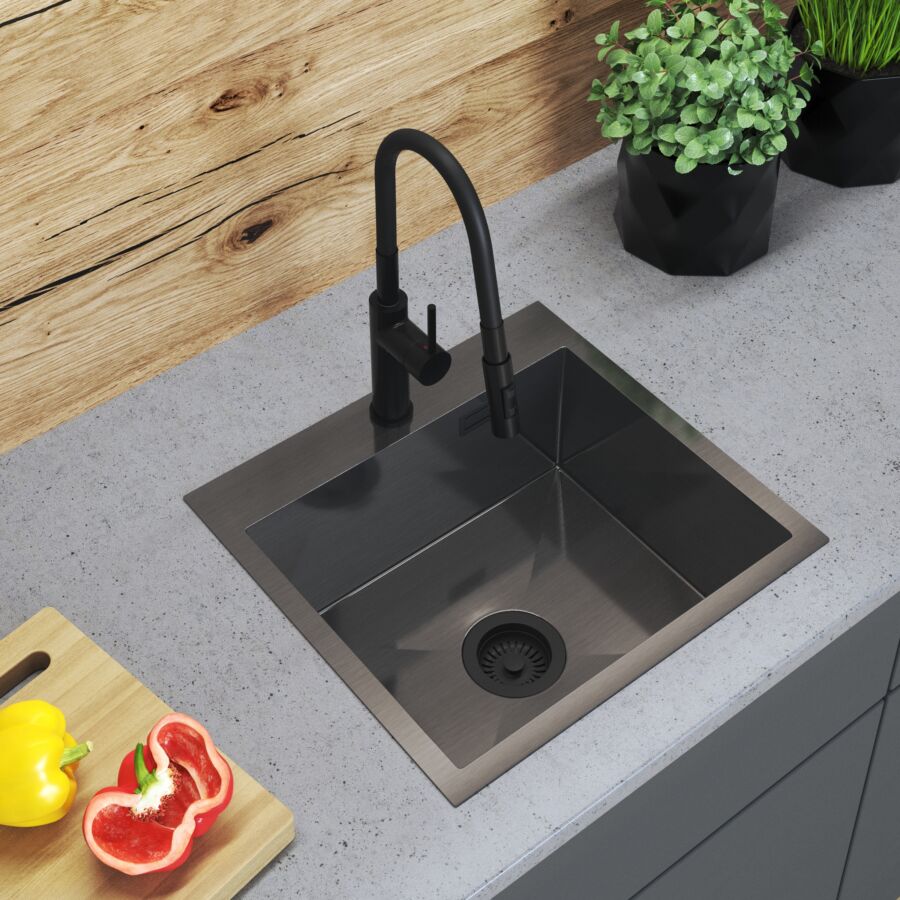 Stalowy S5444 egymedencés rozsdamentes acél mosogató, fekete, beépíthető