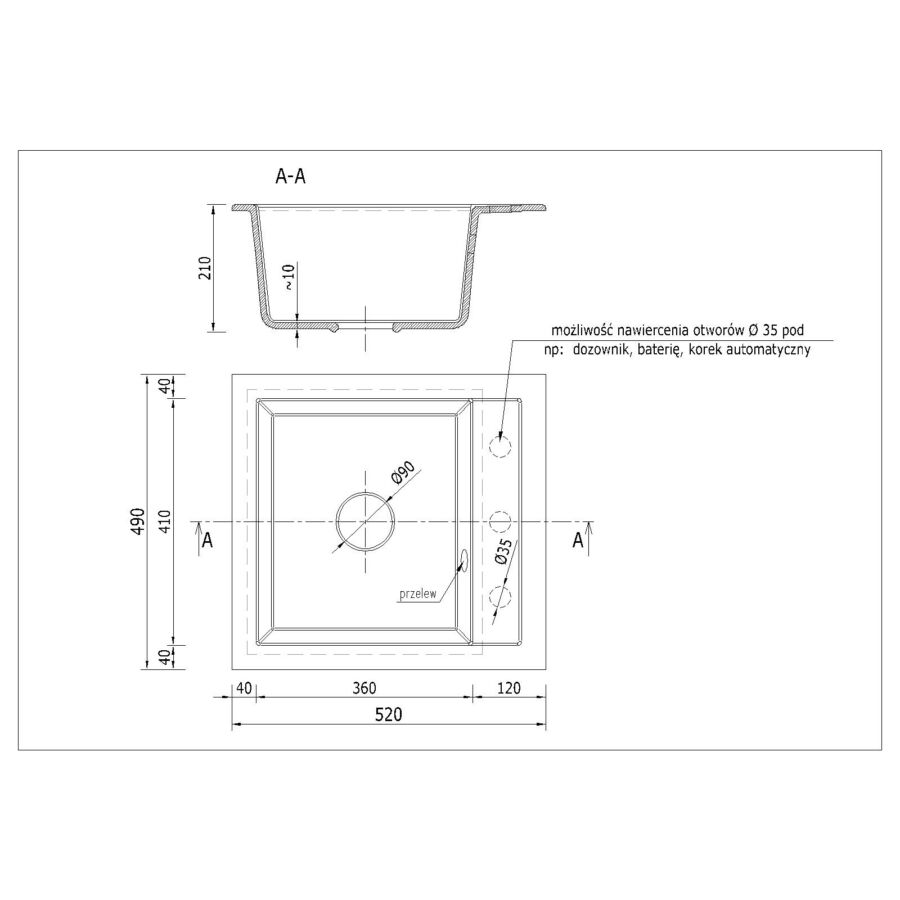 START DON egymedencés gránit mosogató, mély medencével, fekete-szemcsés, fekete, bézs, fehér és szürke színekben. A START DON egymedencés gránit mosogató min. 50 cm széles szekrénybe építhető be.