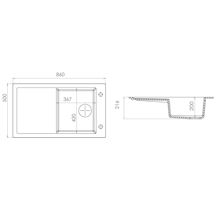 | A mosogató mélysége | 200 mm |