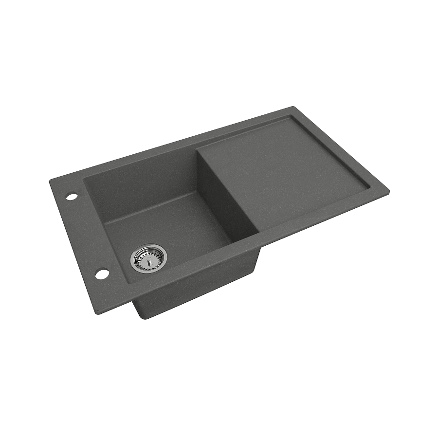TRAMONTANA egymedencés gránit mosogató csepptálcás kivitelben, extra mély medencével, fekete-szemcsés, fekete, bézs, fehér és szürke színekben. Jobbos és balos kivitelben is használható. A TRAMONTANA egymedencés gránit mosogató csepegtető tálcával min. 50 cm széles szekrénybe építhető be.
